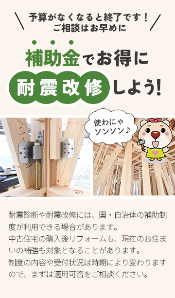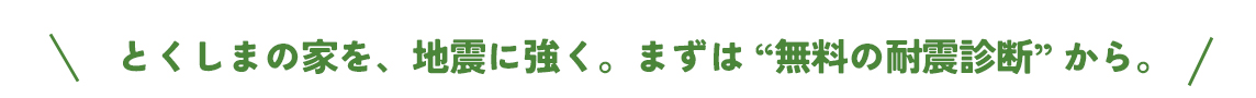 ・耐震診断: 自己負担3000円 → 無料で受けられます。(※石井町は無料です。その他の自治体はお問い合わせください。)
